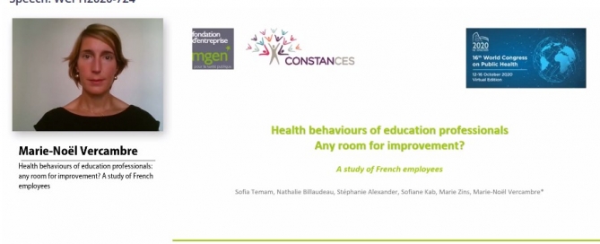 Communication : présentée par Marie-Noël Vercambre au 16th World Congress on Public Health (WCPH), sous forme virtuelle, du 12 au 16 octobre 2020.